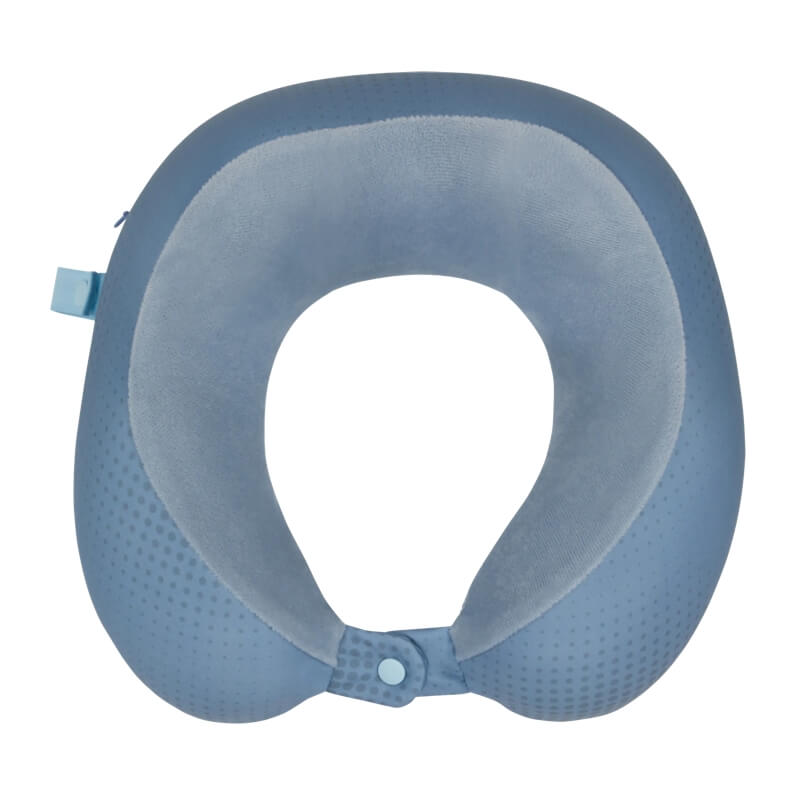 O modelo inclui ainda um prático sistema de fecho com botão na parte frontal, que permite ajustar facilmente a almofada ao pescoço e mantê-la estável mesmo durante o movimento. O seu design compacto e confortável torna-a uma opção prática para transportar na bagagem e utilizar sempre que precisar de maior apoio.