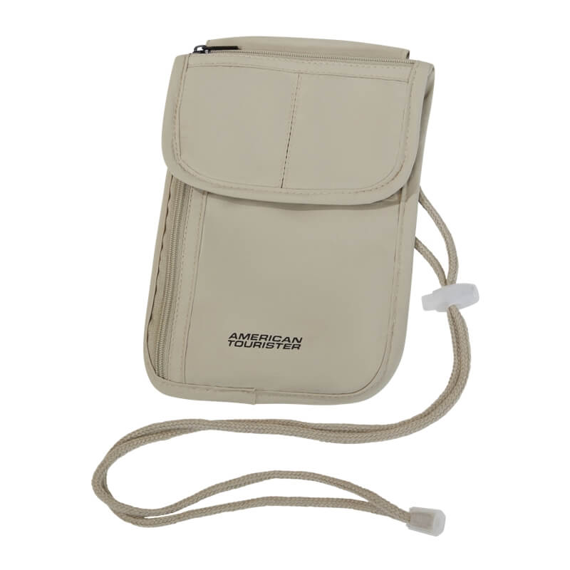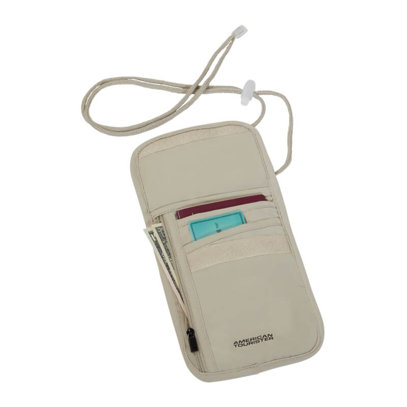 A bolsa possui ainda um cordão ajustável para usar ao pescoço, permitindo um transporte confortável e seguro. Graças ao seu perfil leve e discreto, pode ser facilmente usada por baixo da roupa, tornando-se menos visível e aumentando a proteção dos teus pertences.