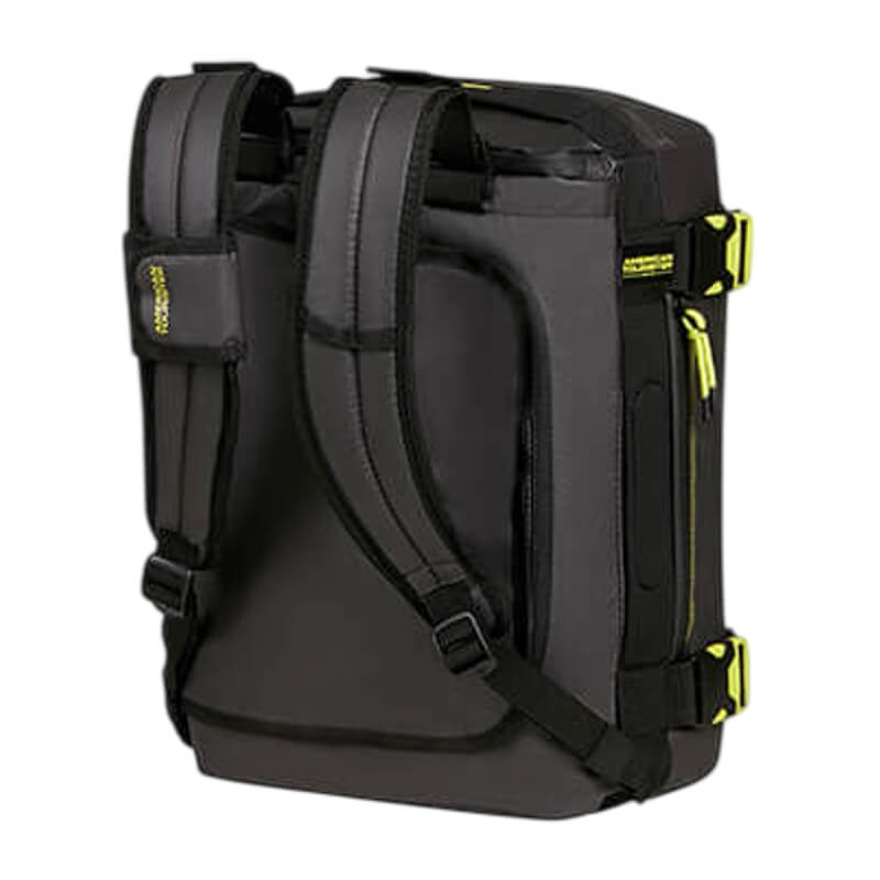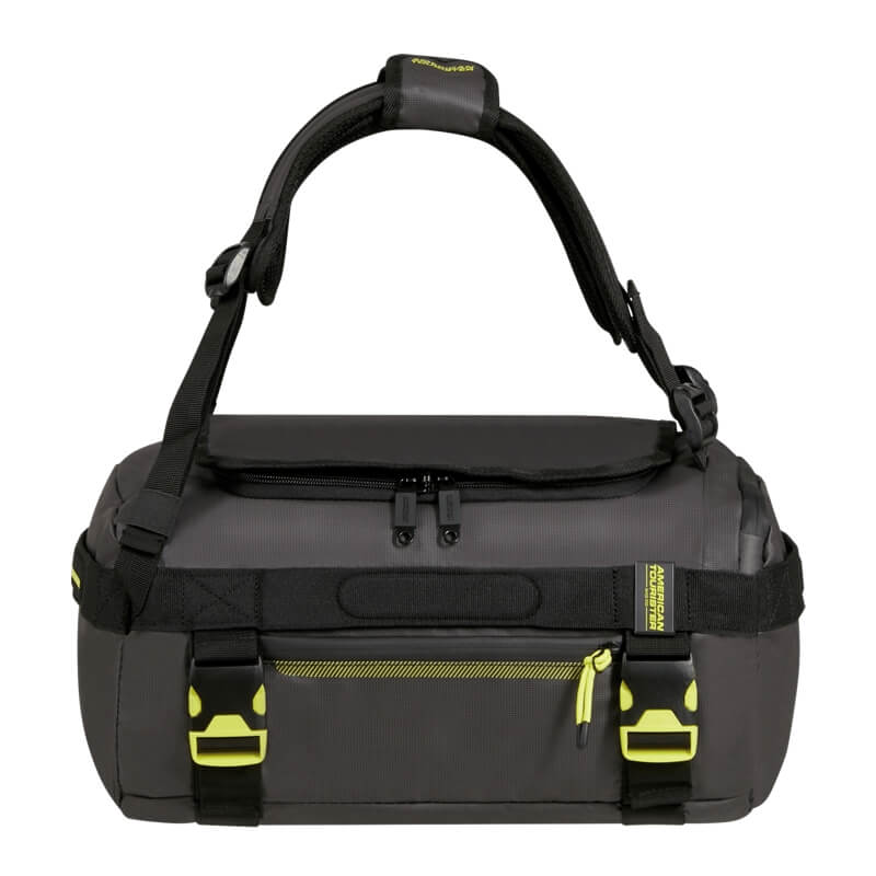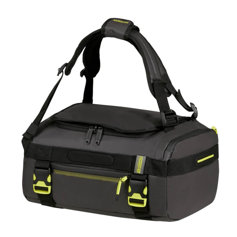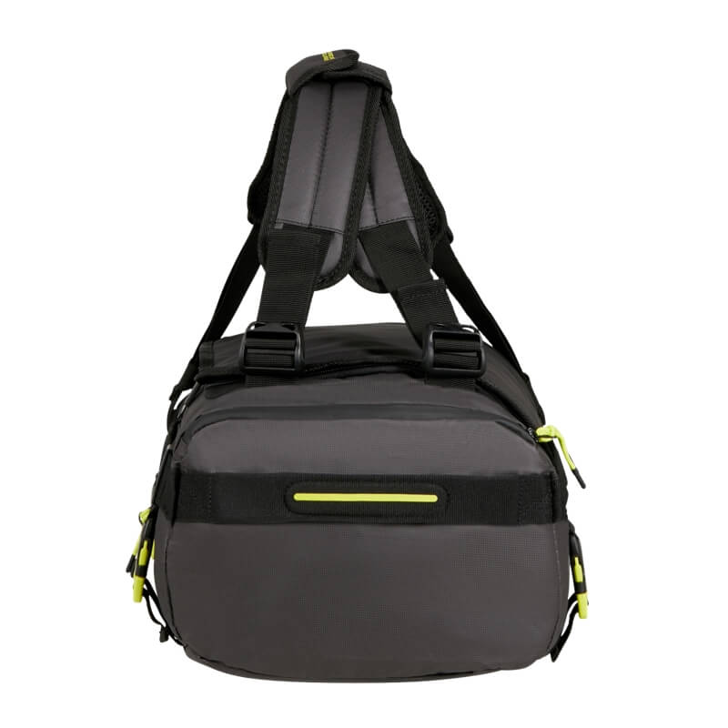 O saco de viagem tamanho S da coleção Urban Track é revestido, apresenta um design contemporâneo e funcional, ideal para quem procura praticidade sem abdicar de estilo. Com uma estética urbana marcada pela combinação de tons escuros e apontamentos em amarelo fluorescente, este modelo destaca-se pelo seu visual moderno e dinâmico.