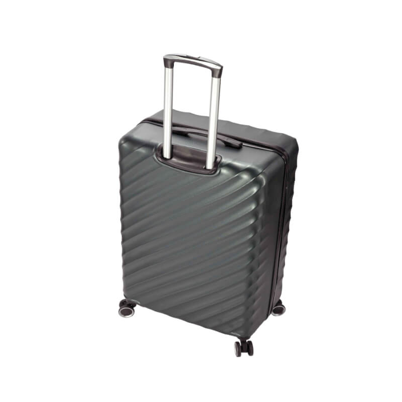 A mala também possui quatro rodas duplas multidirecionais, que giram em 360°. Isto proporciona uma excelente mobilidade, permitindo que desloque a mala com facilidade em diferentes direções, seja empurrando-a ao seu lado ou empurrando-a na posição vertical.