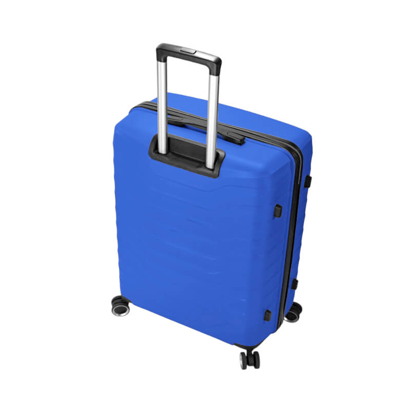 A mala também possui quatro rodas duplas multidirecionais, que giram em 360°. Isto proporciona uma excelente mobilidade, permitindo que desloque a mala com facilidade em diferentes direções, seja empurrando-a ao seu lado ou empurrando-a na posição vertical.