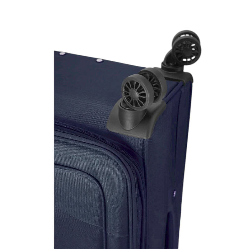 A mala também possui quatro rodas duplas multidirecionais, que giram em 360°. Isto proporciona uma excelente mobilidade, permitindo que desloque a mala com facilidade em diferentes direções, seja empurrando-a ao seu lado ou empurrando-a na posição vertical.