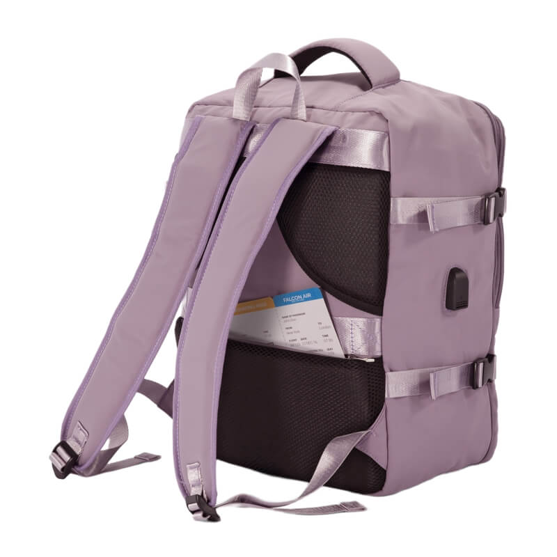 Um dos seus destaques é a porta USB integrada, que permite ligar um powerbank no interior e carregar o telemóvel no exterior de forma cómoda enquanto se desloca. Isto torna a mochila especialmente útil para viagens longas, aeroportos, deslocações urbanas ou trabalho remoto em movimento.