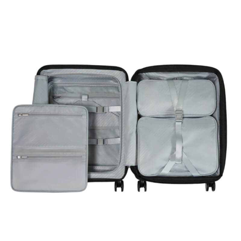 No interior, a Paralux revela toda a sua atenção ao detalhe. Está totalmente equipada com múltiplas bolsas de arrumação, divisórias fixas e removíveis, um bolso para roupa húmida e cintas ajustáveis que mantêm tudo no lugar durante o transporte. Cada compartimento foi pensado para otimizar o espaço e proteger os seus pertences, ajudando-o a manter uma organização impecável do início ao fim da viagem.