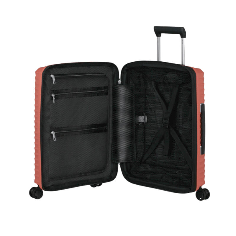 Escolha conforto com a Mala de Cabine 55cm Expansível Upscape da Samsonite. Desfrute de viagens mais tranquilas graças às rodas com suspensão que absorvem os choques e fazem menos ruído. Manter a sua mala de viagem limpa e higienizada é agora mais simples através do forro interior removível e lavável. A capacidade de expansão permite-lhe ainda estar preparada para qualquer situação e trazer umas lembranças extra. No interior tem um bolso para uma powerbank (não incluído) que ligada à porta USB permite-lhe carregar comodamente o seu telemóvel enquanto viaja.
