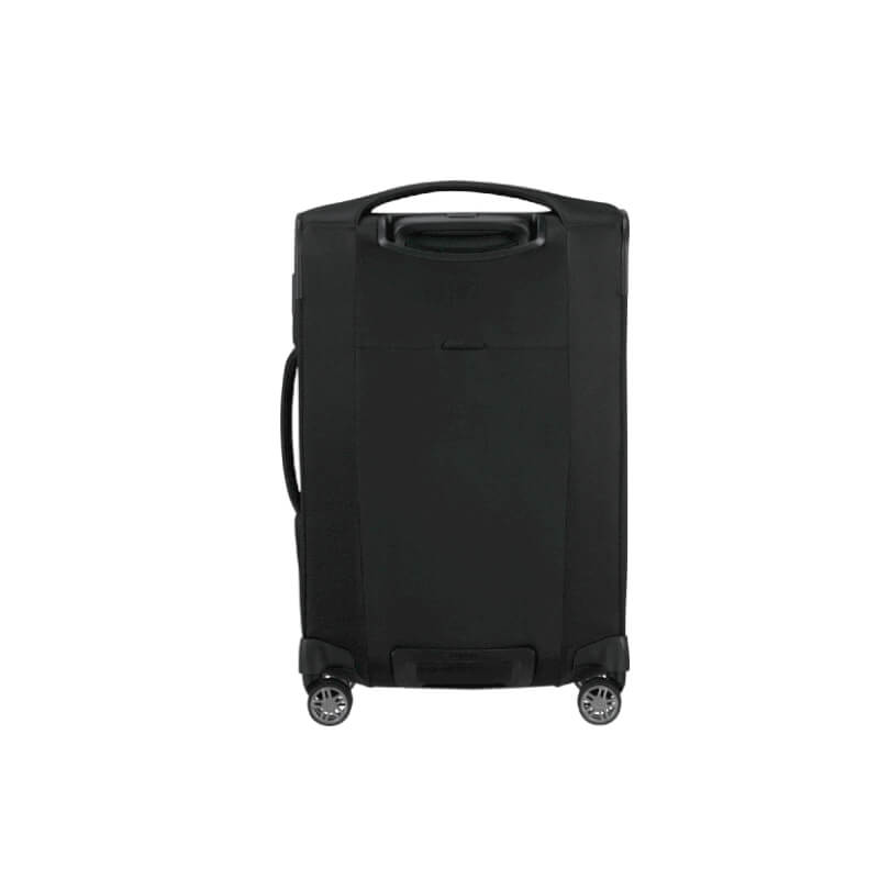 Graças às suas inovadoras rodas com absorção de choque, a locomoção torna-se extremamente suave, garantindo um deslocamento sem esforço, independentemente do tipo de terreno. O icônico cabo de transporte em ponte confere um toque de distinção e ergonomia, facilitando o manuseio e trazendo ainda mais comodidade.