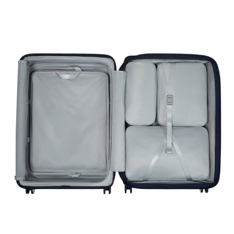 O duplo acesso tanto pelo bolso frontal de abertura rápida como pelo compartimento central torna a organização e o acesso aos seus pertences muito mais práticos. Pode retirar documentos, dispositivos eletrónicos ou artigos de higiene sem ter de abrir toda a mala, o que é ideal para viagens de negócios ou controlos de segurança.