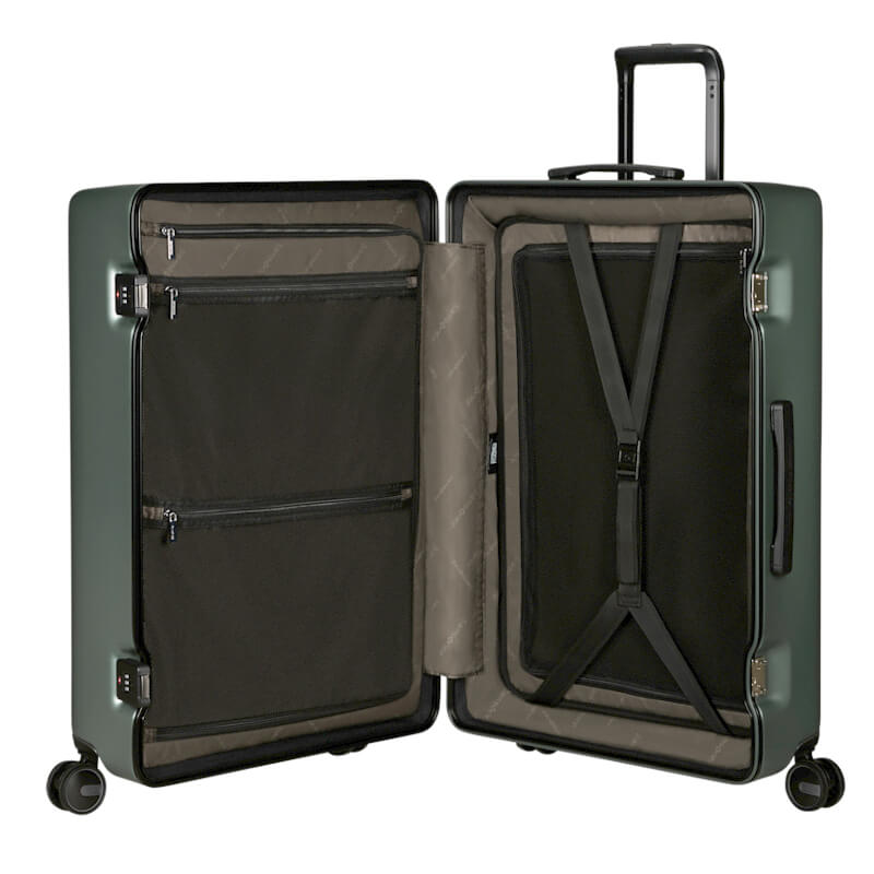 A forma quadrada das malas foi cuidadosamente concebida para maximizar o espaço interior, proporcionando uma organização eficiente e prática. Desta forma, há espaço de sobra tanto para transportar todos os artigos essenciais como para guardar confortavelmente as recordações adquiridas ao longo da viagem.