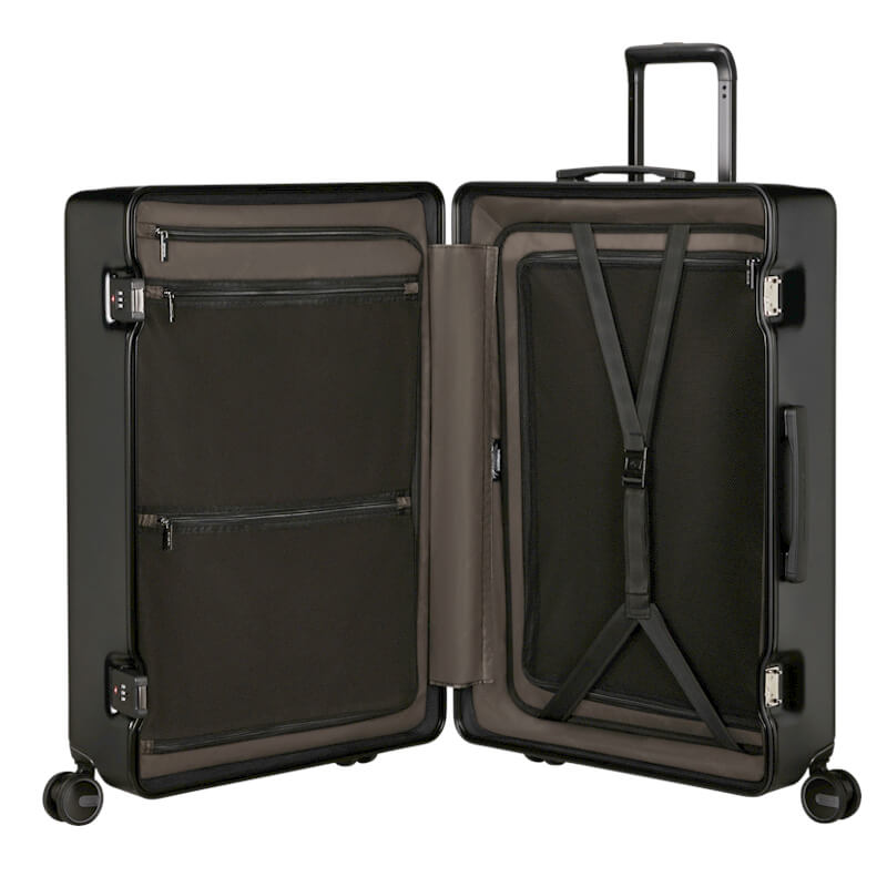 A forma quadrada das malas foi cuidadosamente concebida para maximizar o espaço interior, proporcionando uma organização eficiente e prática. Desta forma, há espaço de sobra tanto para transportar todos os artigos essenciais como para guardar confortavelmente as recordações adquiridas ao longo da viagem.