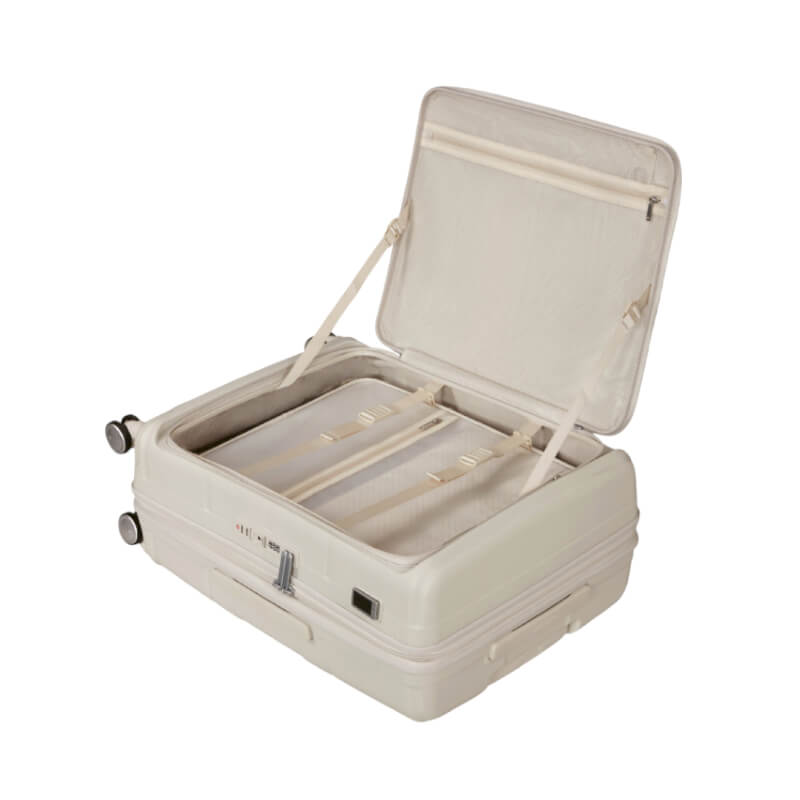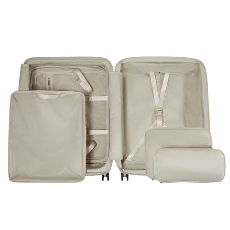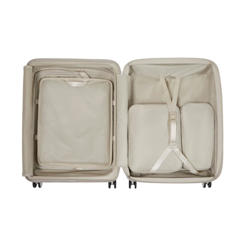 No interior, a Paralux revela toda a sua atenção ao detalhe. Está totalmente equipada com múltiplas bolsas de arrumação, divisórias fixas e removíveis, um bolso para roupa húmida e cintas ajustáveis que mantêm tudo no lugar durante o transporte. Cada compartimento foi pensado para otimizar o espaço e proteger os seus pertences, ajudando-o a manter uma organização impecável do início ao fim da viagem.
