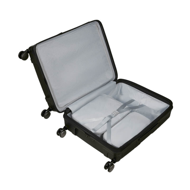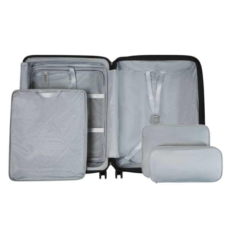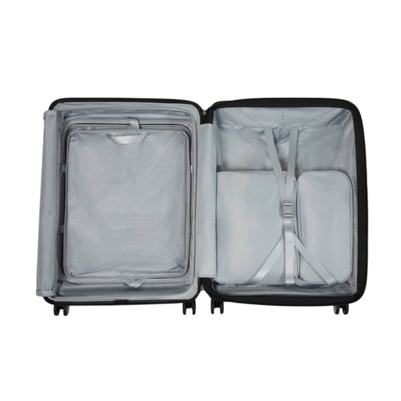 No interior, a Paralux revela toda a sua atenção ao detalhe. Está totalmente equipada com múltiplas bolsas de arrumação, divisórias fixas e removíveis, um bolso para roupa húmida e cintas ajustáveis que mantêm tudo no lugar durante o transporte. Cada compartimento foi pensado para otimizar o espaço e proteger os seus pertences, ajudando-o a manter uma organização impecável do início ao fim da viagem.