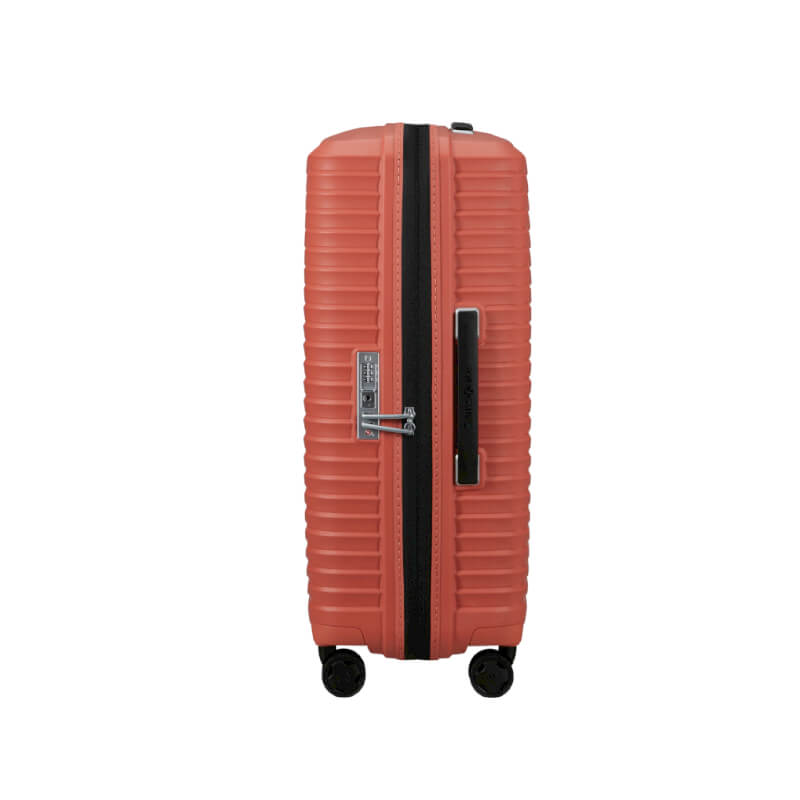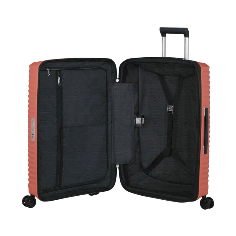Escolha conforto com as Mala de Viagem Média 68cm Upscape da Samsonite. Desfrute de viagens mais tranquilas graças às rodas com suspensão que absorvem os choques e fazem menos ruído. Manter a sua mala de viagem limpa e higienizada é agora mais simples através do forro interior removível e lavável. A capacidade de expansão permite-lhe ainda estar preparada para qualquer situação e trazer umas lembranças extra.