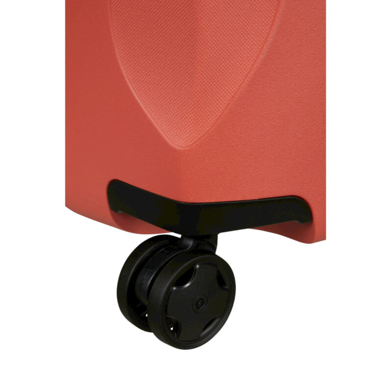 As 4 rodas duplas com suspensão são projetadas para reduzir o ruído e as vibrações durante o transporte. Isto proporciona assim uma experiência mais tranquila e confortável ao movimentar a mala em diferentes superfícies.