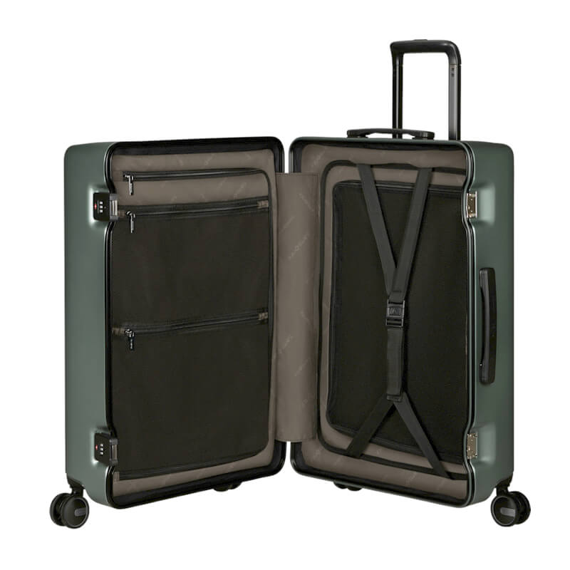 A forma quadrada das malas foi cuidadosamente concebida para maximizar o espaço interior, proporcionando uma organização eficiente e prática. Desta forma, há espaço de sobra tanto para transportar todos os artigos essenciais como para guardar confortavelmente as recordações adquiridas ao longo da viagem.