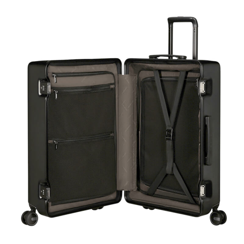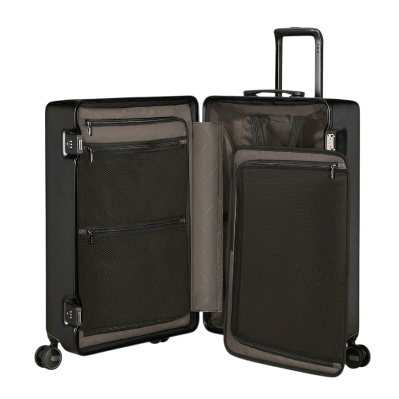 A forma quadrada das malas foi cuidadosamente concebida para maximizar o espaço interior, proporcionando uma organização eficiente e prática. Desta forma, há espaço de sobra tanto para transportar todos os artigos essenciais como para guardar confortavelmente as recordações adquiridas ao longo da viagem.