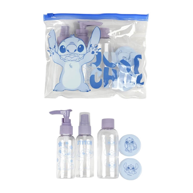 Este conjunto de viagem com o adorável Stitch, personagem da Disney, é a escolha perfeita para quem deseja praticidade e charme ao transportar seus produtos líquidos durante viagens ou passeios. Composto por frascos compactos e funcionais, o conjunto é ideal para armazenar itens como shampoo, condicionador, cremes ou loções, sem abrir mão do estilo.