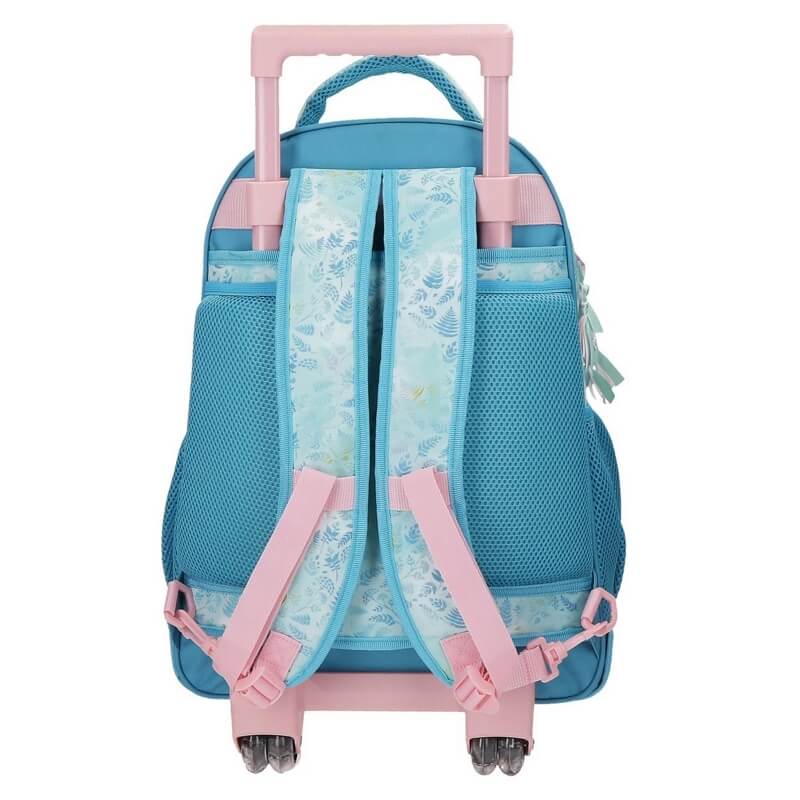 Esta mochila escolar com rodas da coleção Find Your Strenght em que as irmãs Ana e Elsa são as protagonistas tem duas rodas integradas. O forro é personalizado, as alças ergonómicas e acolchoadas para que as meninas possam levar cómodamente. Os dois compartimentos e bolsos frontais de tamanhos diferentes permitem uma melhor organização do material escolar. Inclui um chaveiro personalizado que complementa o design.
