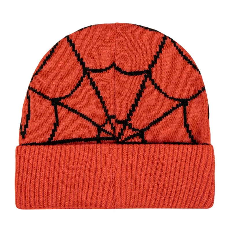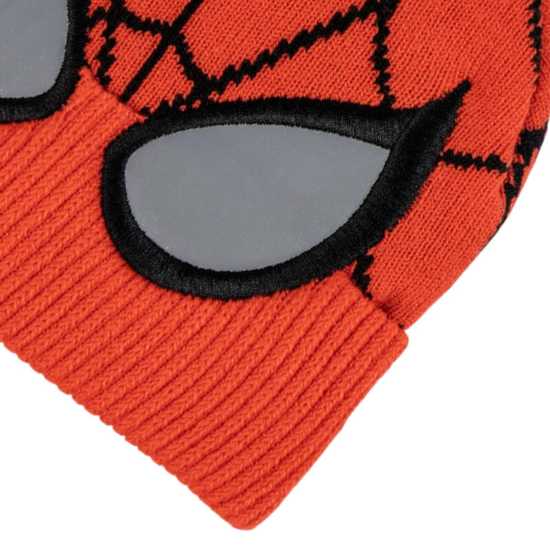 O gorro na cor vermelha, com detalhes em preto que formam a clássica teia de aranha, uma marca registrada do traje do herói. Na parte frontal, há dois grandes olhos em preto e branco, representando a máscara do Homem-Aranha, o que torna a peça visualmente marcante e imediatamente reconhecível pelos fãs do personagem. O tecido é macio, quente e confortável, perfeito para os dias mais frios.