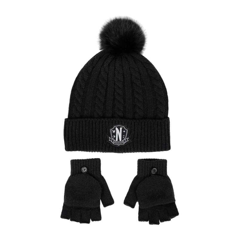 Perfeito para o inverno, este conjunto Gorro e Luvas Wednesday une estilo, atitude e aconchego, garantindo um visual marcante e cheio de charme digno da própria Wednesday Addams.