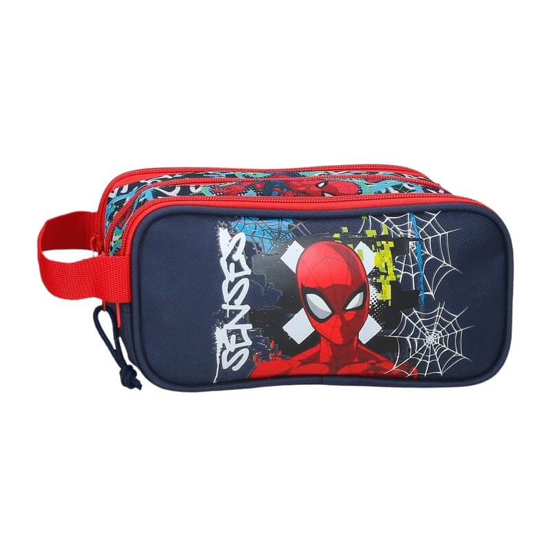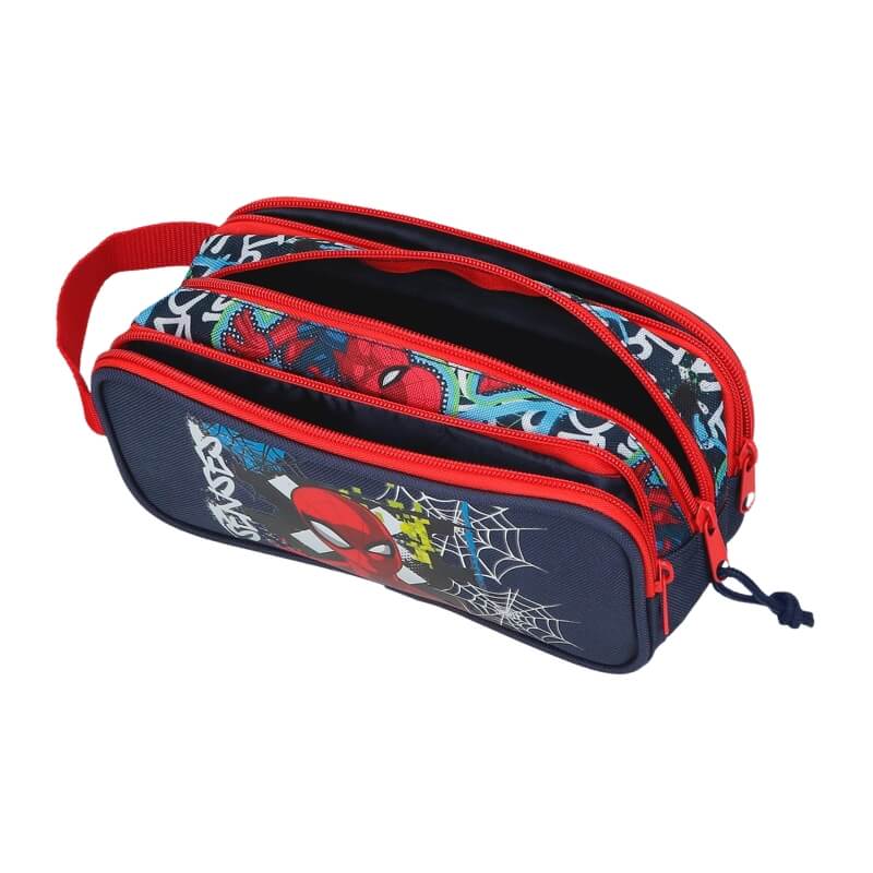 Estojo Escolar 3 Compartimentos Gravity of SPIDERMAN Azul Marinho