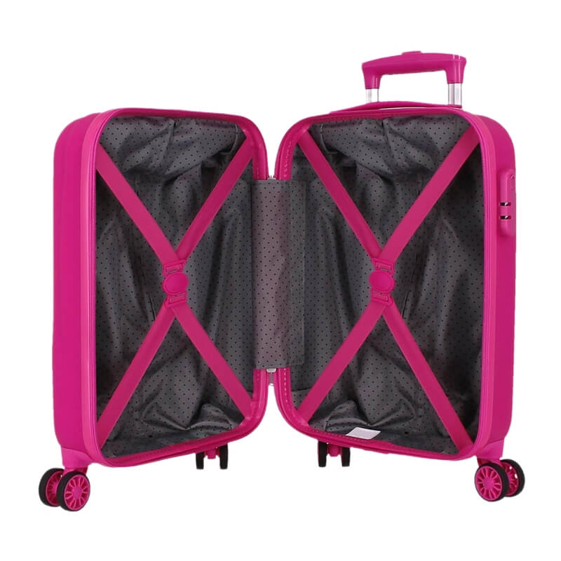 Esta mala de cabine é perfeita para viajar em família. Tem um interior prático com dois compartimentos com elásticos em ambos os lados de forma eficaz, o que significa que tem espaço suficiente para acomodar suas roupas e pertences de forma organizada.