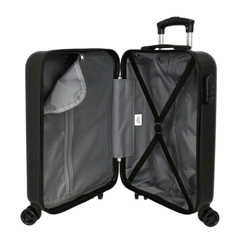 Esta mala de cabine é perfeita para viajar em família. Tem um interior prático de forma eficaz, o que significa que tem espaço suficiente para acomodar suas roupas e pertences de forma organizada. A presença de compartimentos e bolsos com fecho pode ajudar a separar itens e manter suas coisas organizadas durante a viagem.