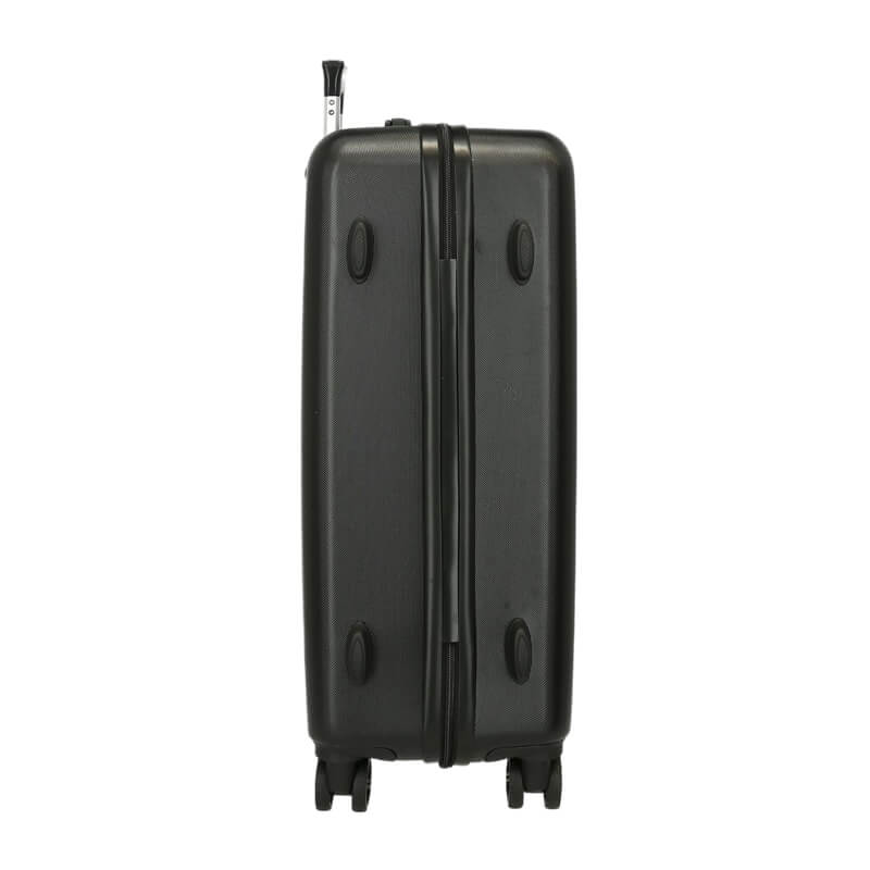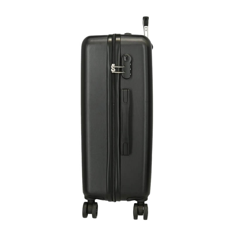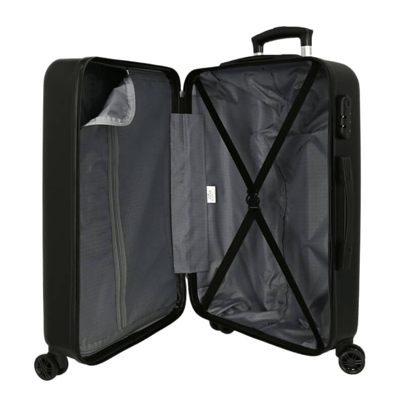 Esta mala média é perfeita para viajar em família. Tem um interior prático de forma eficaz, o que significa que tem espaço suficiente para acomodar suas roupas e pertences de forma organizada. A presença de compartimentos e bolsos com fecho pode ajudar a separar itens e manter suas coisas organizadas durante a viagem.