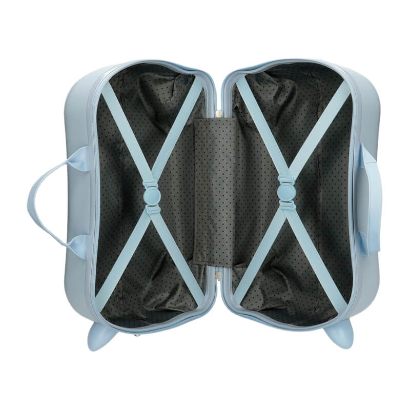 As mais pequenas vão ficar encantadas por desfrutar da sua primeira mala, pois é muito fácil de transportar, cómoda para os mais pequenos porque podem sentar-se nela. O interior da mala tem cintas ajustáveis em ambos os lados, é uma característica que permite as crianças organizem e fixar as suas roupas no interior da mala, garantindo que elas permaneçam no lugar durante o transporte.
