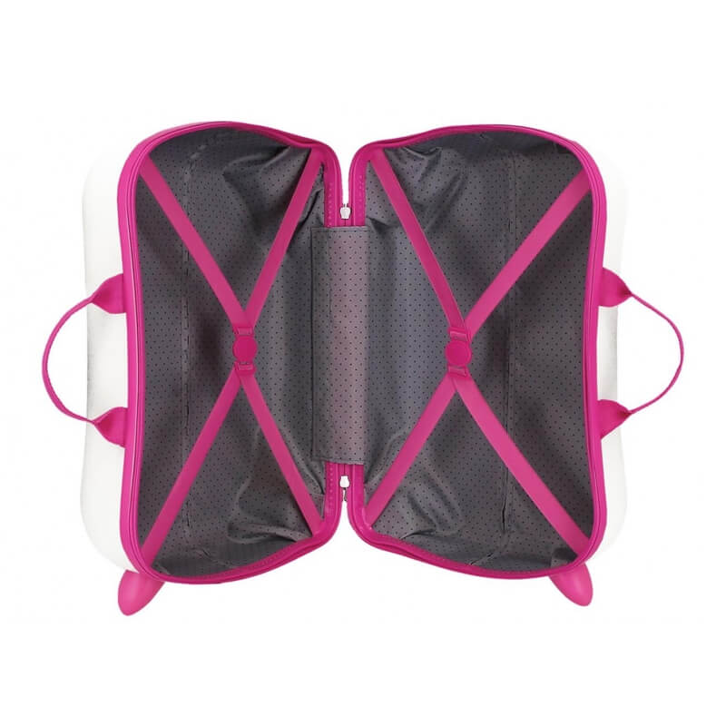 As mais pequenas vão ficar encantadas por desfrutar da sua primeira mala, pois é muito fácil de transportar, cómoda para os mais pequenos porque podem sentar-se nela. O interior da mala tem cintas ajustáveis em ambos os lados, é uma característica que permite as crianças organizem e fixar as suas roupas no interior da mala, garantindo que elas permaneçam no lugar durante o transporte.