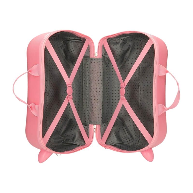 As mais pequenas vão ficar encantadas por desfrutar da sua primeira mala, pois é muito fácil de transportar, cómoda para os mais pequenos porque podem sentar-se nela. O interior da mala tem cintas ajustáveis em ambos os lados, é uma característica que permite as crianças organizem e fixar as suas roupas no interior da mala, garantindo que elas permaneçam no lugar durante o transporte.