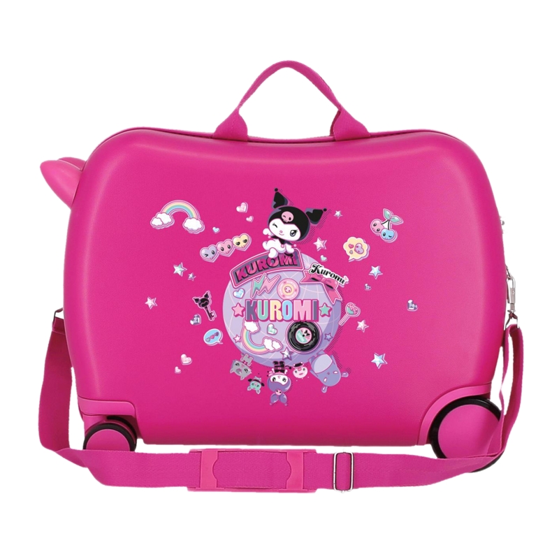 A mala infantil Kuromi, da coleção Around the World é a companheira perfeita para as crianças que adoram viajar com estilo e imaginação. Com um design vibrante em fúcsia e uma estampa divertida da Kuromi rodeada de ícones de viagem e detalhes coloridos, esta mala transmite alegria e personalidade em cada detalhe.