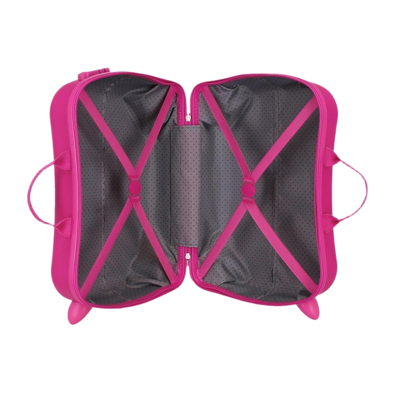 As mais pequenas vão ficar encantadas por desfrutar da sua primeira mala, pois é muito fácil de transportar, cómoda para os mais pequenos porque podem sentar-se nela. O interior da mala tem cintas ajustáveis em ambos os lados, é uma característica que permite as crianças organizem e fixar as suas roupas no interior da mala, garantindo que elas permaneçam no lugar durante o transporte.