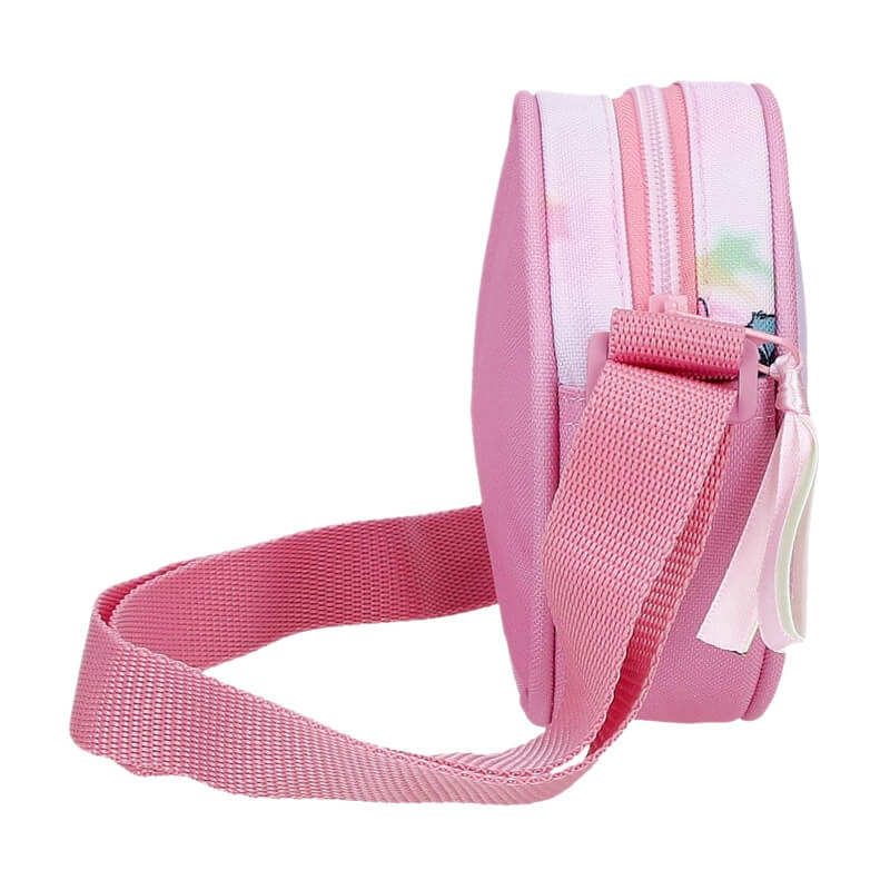 Esta malinha de tiracolo apresenta um formato redondo onde poderás guardar os teus pequenos acessórios. Inclui uma alça de ombro ajustável para adaptares à tua altura.