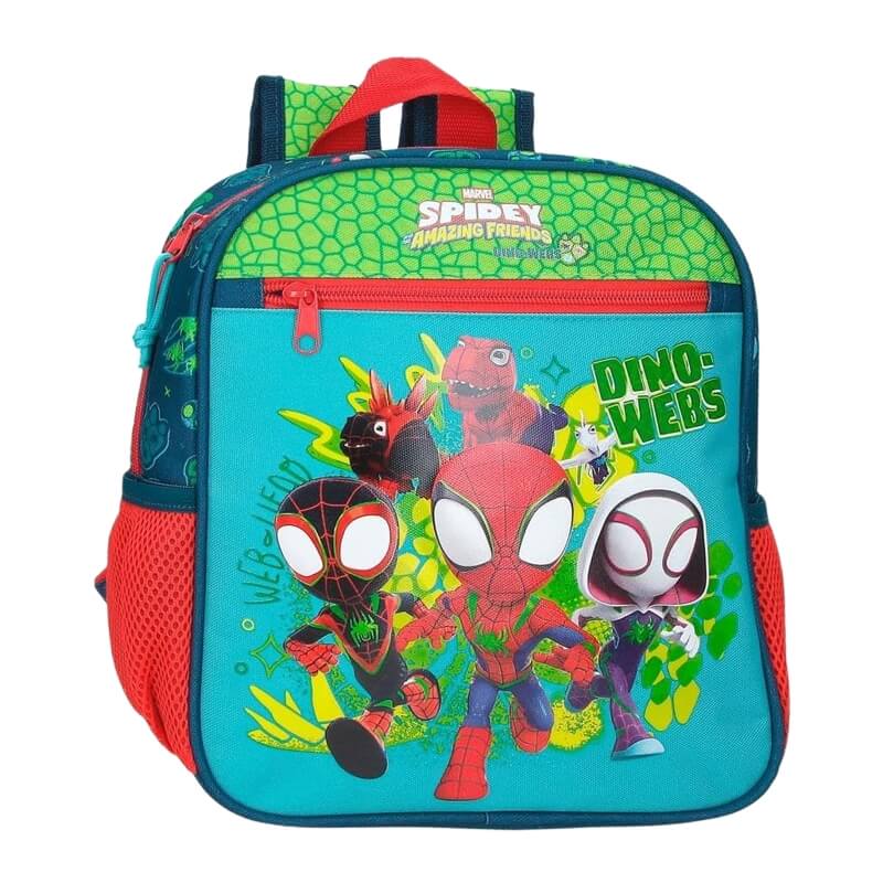 A nova coleção Dino-Webs do Spidey and His Amazing Friends combina super-heróis e dinossauros num design cheio de cor e diversão. Com tons de azul, verde padrão escamas e detalhes em vermelho, destaca o Spidey, Miles e Ghost-Spider em ação, acompanhados por dinossauros e elementos jurássicos.