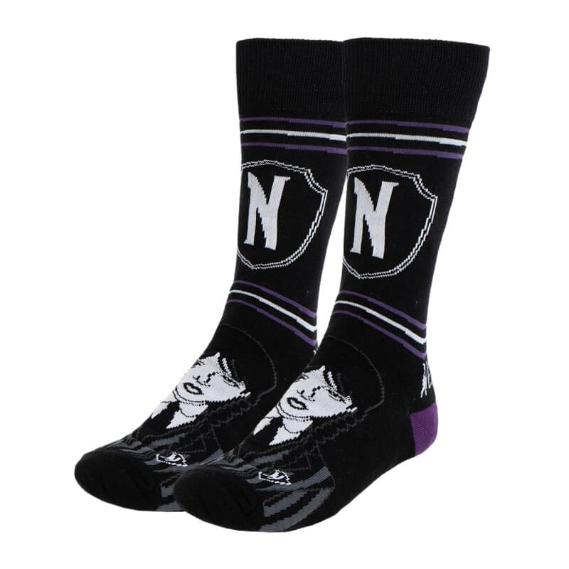 Mais do que simples acessórios, estas meias trazem uma dose de personalidade e irreverência, perfeitas para quem deseja levar a essência da Wednesday em cada detalhe do visual.