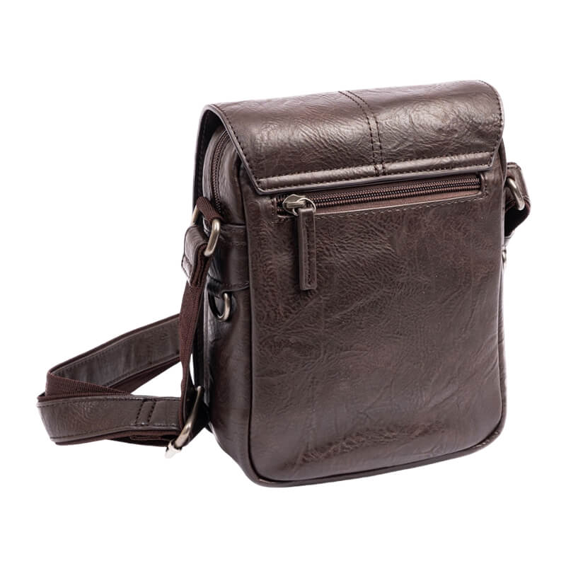A alça ajustável garante conforto e adaptabilidade, permitindo o uso ao ombro ou a tiracolo conforme a preferência. A tonalidade em castanho e o design minimalista tornam esta bolsa uma escolha ideal para o homem que procura um acessório funcional, duradouro e elegante.