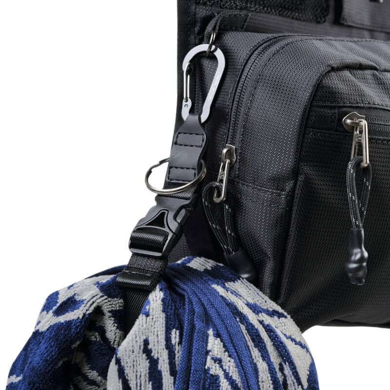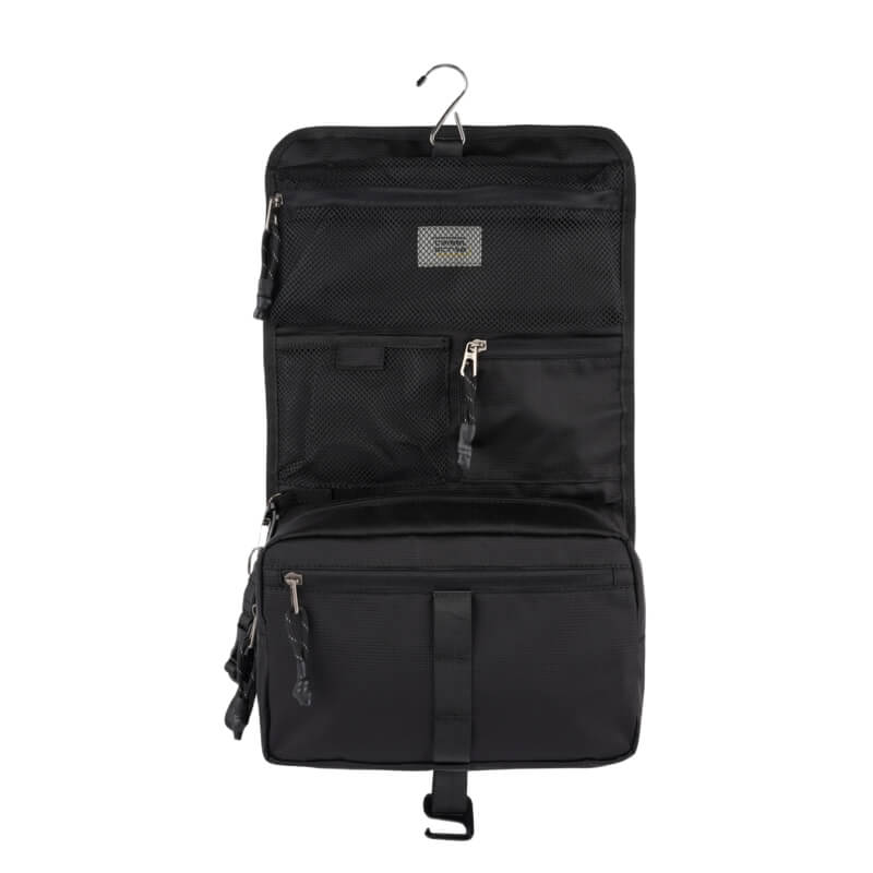 Um dos grandes destaques é o gancho integrado para pendurar, ideal para casas de banho de hotel ou ginásios, garantindo conforto e higiene ao manter a bolsa suspensa e sempre ao alcance. O fecho completo permite abrir a bolsa na totalidade, oferecendo uma visão geral perfeita do conteúdo.