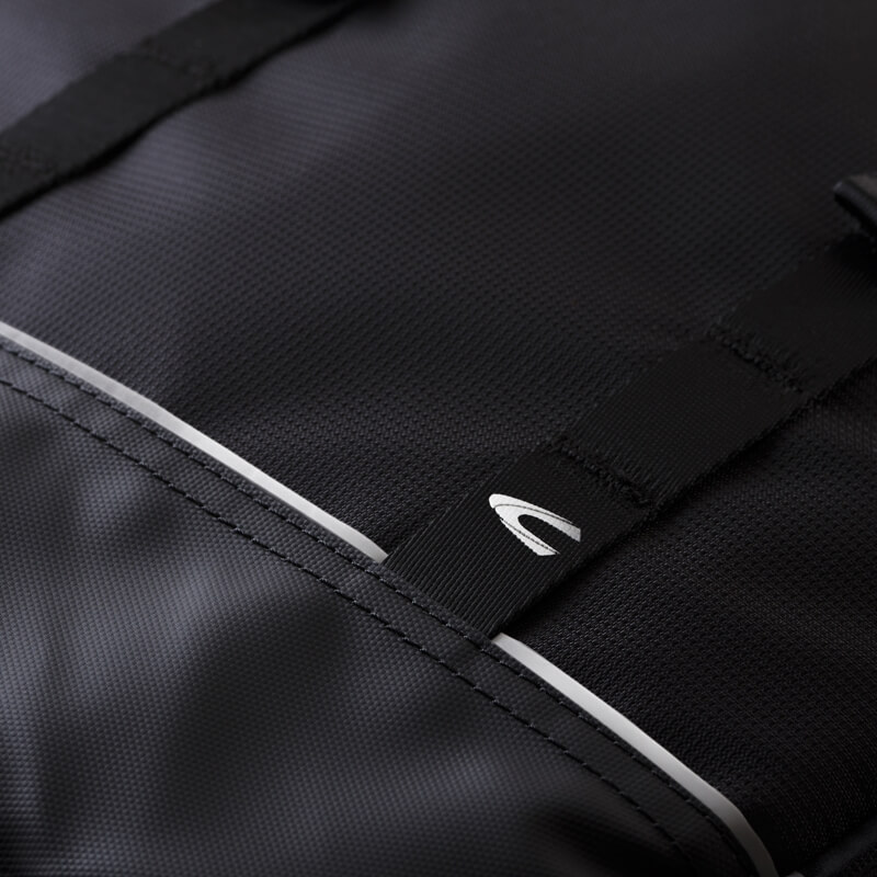 Pensada também para quem viaja com frequência, a mochila tem detalhes refletores e conta com um sistema de adaptação ao trolley de mala de viagem, permitindo encaixá-la facilmente na pega extensível da mala para um transporte mais prático e confortável.