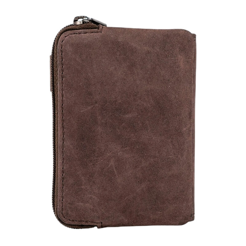 Esta carteira reflete perfeitamente esse conceito. O acabamento em pele castanha de textura suave, combinado com detalhes subtis e o logótipo discreto da marca, confere-lhe um visual elegante e diferenciado que se adapta facilmente a qualquer look, do casual ao mais clássico. O seu formato compacto torna-a prática para transportar no bolso das calças ou do casaco, sem comprometer o conforto.