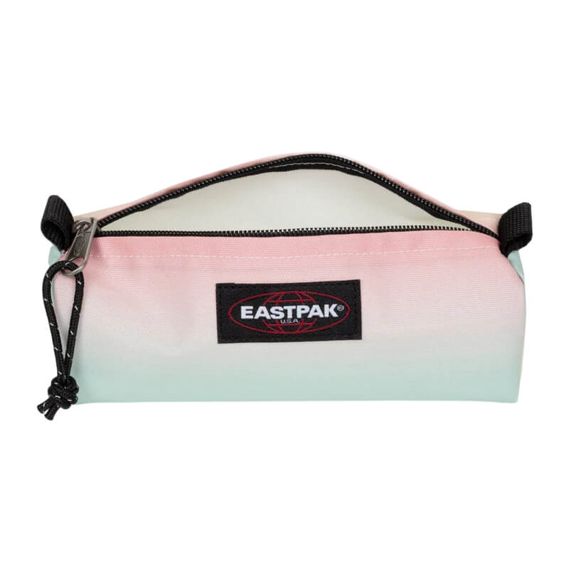 O estojo Benchmark Single da Eastpak, na cor Spark Unicorn, destaca-se pelo seu formato cilíndrico e ligeiramente desigual, que lhe confere um visual distinto e moderno. Combina um design moderno e suave em tons degradé com a funcionalidade que já é assinatura da Eastpak.