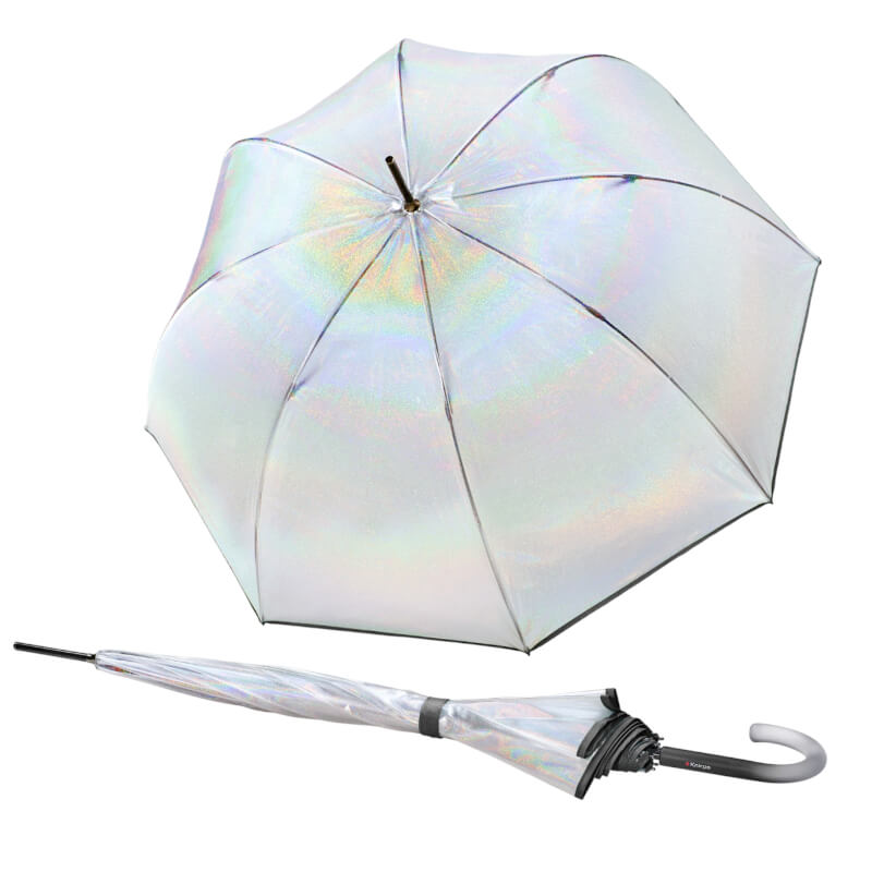 O guarda-chuva transparente da Knirps, com sua copa translúcida e mecanismo de abertura manual, oferece uma experiência de uso prática e sofisticada, um atrativo absoluto com "visão panorâmica" mesmo com mau tempo. O manípulo em stick de acrílico destaca-se pelo design refinado, conferindo ao guarda-chuva uma personalidade marcante.
