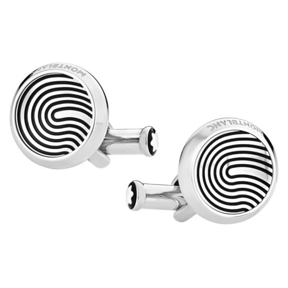 Estes botões de punho redondos em aço inoxidável com incrustação com motivo de impressão digital.