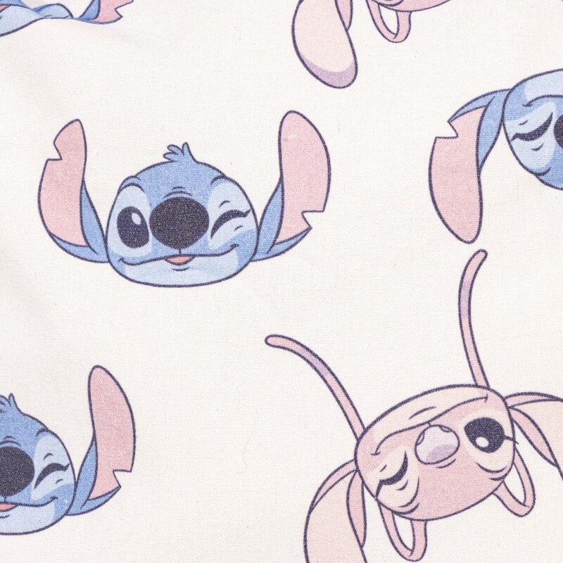 Com fundo claro e estampa repetida do adorável Stitch em várias expressões divertidas, o design transmite alegria e personalidade. O padrão colorido e vibrante torna a peça única, perfeita para quem adora o carismático personagem da Disney.