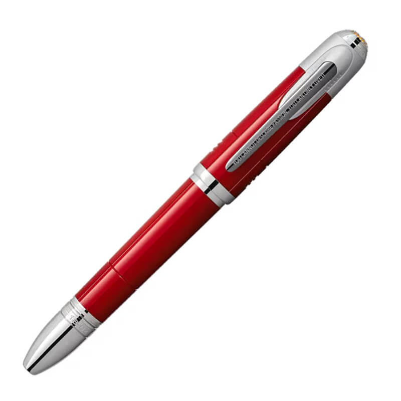 A rollerball Great Characters Enzo Ferrari de edição limitada, é uma peça que celebra a paixão, a velocidade e o espírito visionário do lendário fundador da Ferrari. Produzida em resina preciosa vermelha, num tom intenso inspirado no “Rosso 70 Anni”, evoca as tonalidades históricas que marcaram a trajetória da Scuderia, combinando brilho sofisticado com elegantes detalhes metálicos.