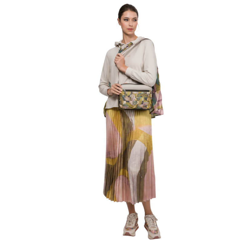 Esta bolsa de tiracolo tem três compartimentos independentes, todos com fecho de correr. Ela oferece bastante espaço para manter os teus pertences organizados. O interior é forrado e conta com bolsos adicionais, garantindo praticidade no dia a dia. O bolso exterior permite o acesso rápido a itens mais pequenos que precisam de ser alcançados rapidamente sem de ter abrir a bolsa. Além disso, a alça ajustável permite que ajustes o comprimento conforme a tua preferência, tornando-a confortável e versátil para qualquer situação.