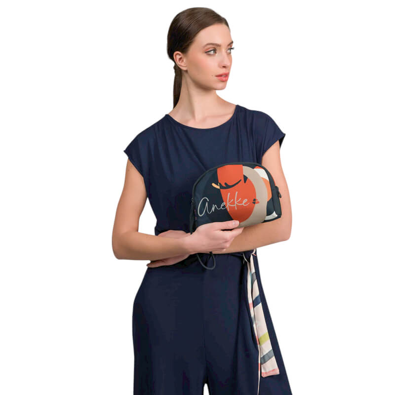 Esta bolsa necessaire de praia da coleção Anekke Eikon é uma escolha encantadora e prática para diversas ocasiões. Com o seu design original em tons de azul escuro e laranja, ela adiciona um toque de estilo ao teu visual. Oferece espaço suficiente para armazenar produtos de higiene, cosméticos, dinheiro, cartões, chaves e outros itens essenciais tornam-na versátil e funcional.