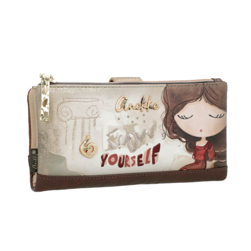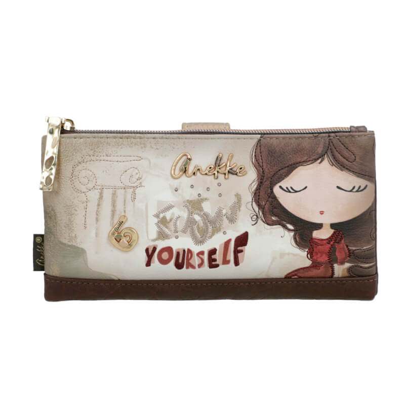 ANEKKE Carteira Grande Flexível RFID Muse Castanha