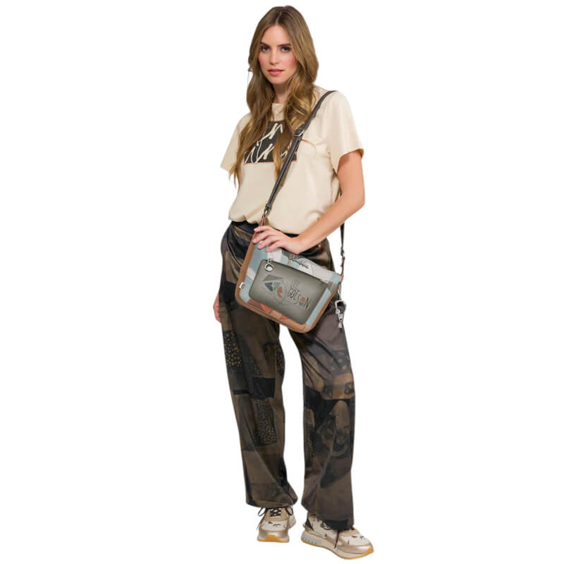 ANEKKE Mala de Tiracolo c/ Bolso Frontal Auralis Bege/Castanho