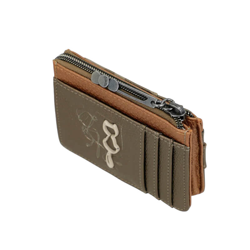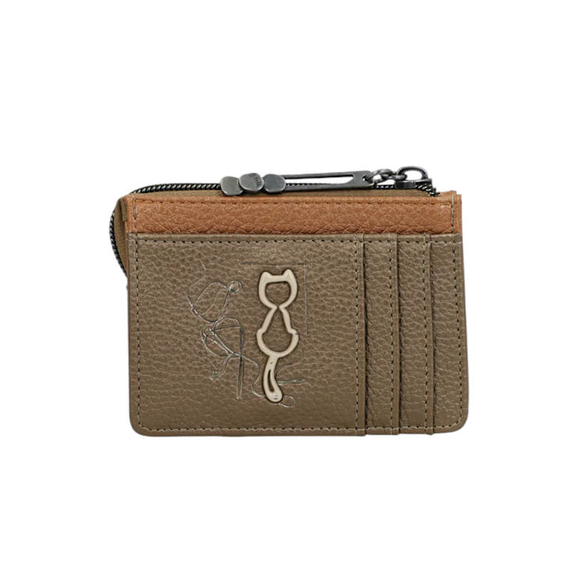 Este novo modelo de porta-cartões é compacto e prático. Possui dois compartimentos: um frontal, que abre por meio de uma aba e cujo interior oferece espaço para vários cartões, e outro superior, equipado com zíper, ideal para guardar moedas com segurança. Todo o interior é cuidadosamente forrado, garantindo maior durabilidade e um acabamento mais refinado.