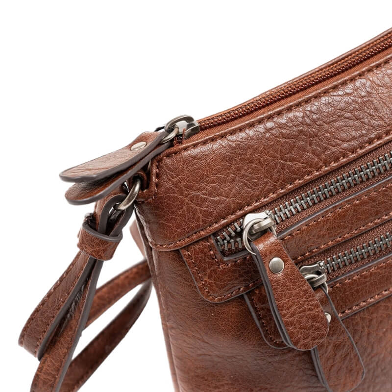 A bolsa tem dois bolos frontais e um bolso na parte de trás com fecho de correr, perfeitos para guardar pequenos objetos de acesso rápido, como chaves, telemóvel. O compartimento principal oferece espaço generoso para transportar todos os essenciais do dia a dia de forma organizada e segura.